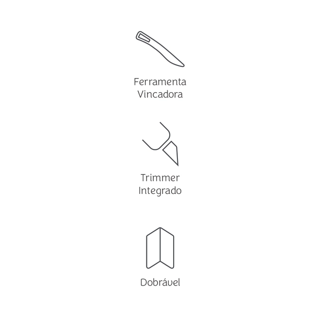 Os cortes feitos na base ficam incríveis, você só precisa utilizar o trimmer com lâmina de titânio que já vem acoplado a ela. Esse trimmer é capaz de cortar uma folha por vez de diversos tipos de papéis com gramatura de até 300 g/m².