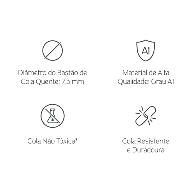 Tipo de Cola: Não Tóxica, segura para uso, que não provoca fumaças tóxicas