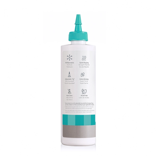 A Cola Tacky Mimo com Bico Ajustável 236ml é uma cola multiuso profissional, super forte, secagem rápida, acid free e ideal para artesanato, scrapbook e cartonagem.