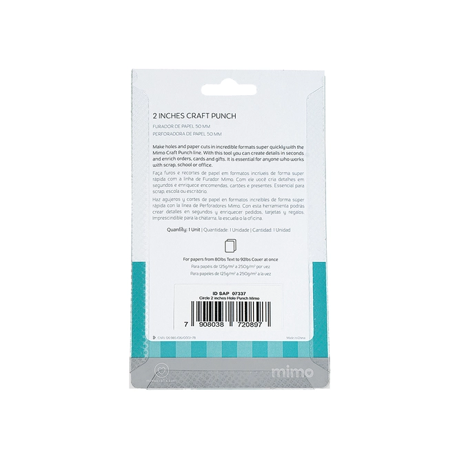 O Furador de Papel Decorativo Mimo - Círculo 50mm é ideal para fazer furos decorativos em papéis de 125g a 250g. Perfeito para scrapbooking, escola e papelaria criativa com cortes rápidos e precisos.