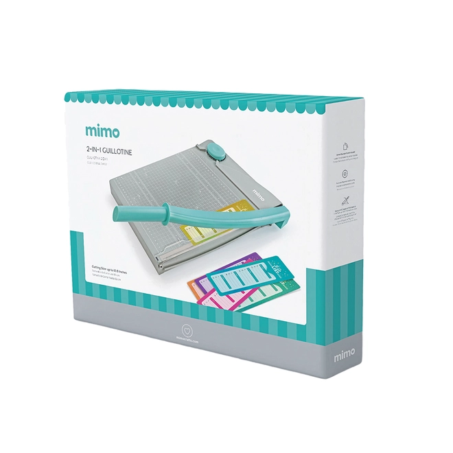 Sendo assim, a Guilhotina 2 em 1 Mimo é perfeita para a criação de diversos tipos de artesanatos personalizados, como convites, panfletos, cartões, itens de scrapfesta, scrapbook, low poly, encadernação, home decor e muito mais. Ela também é leve, feita em plástico durável nas cores cinza escuro e azul água e possui lâmina de aço inoxidável de altíssima durabilidade. Então, esta ferramenta de corte Mimo oferece uma ótima relação custo-benefício para seu negócio!