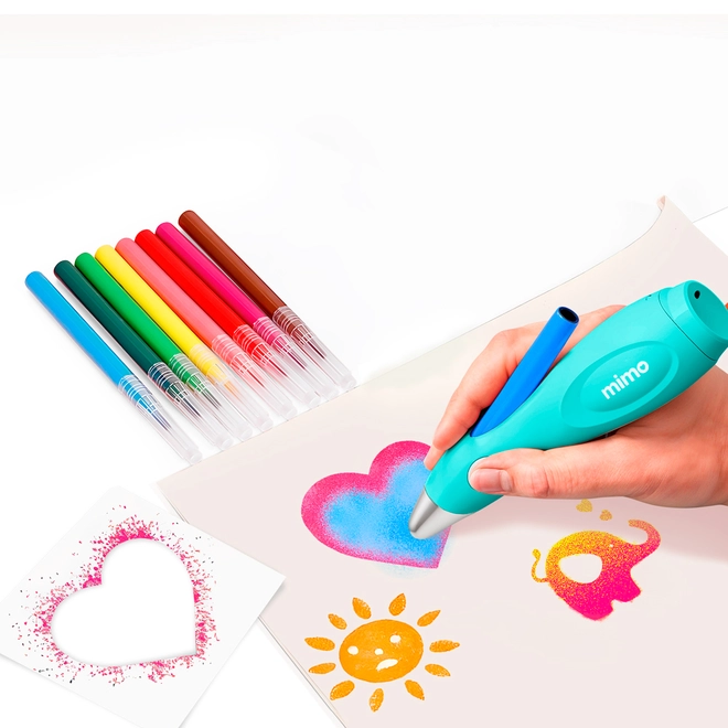 O Kit de Aerógrafo Elétrico USB Mimo cria lindos desenhos em conjunto com as Folhas de Stencil Reutilizável Mimo