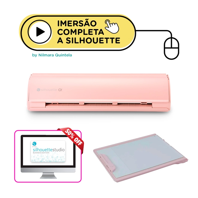Confira os itens presentes no kit:- Silhouette Cameo 5 Alpha Rosa Fosco – Máquina de Recorte Avançada