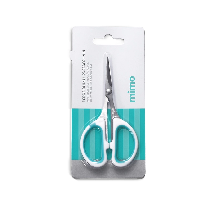 A Mini Tesoura de Precisão Mimo - 10,5cm, com cabo anatômico e emborrachado, é compacta, leve e com ponta extrafina. Garante cortes limpos e controlados em papel, vinil e etiquetas com total conforto.