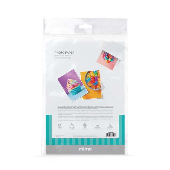 O Papel Fotográfico Brilho - Mimo - 180 g - A4 - 50 Fls é profissional, premium e resistente a água. Com secagem instantânea, gera alta definição de impressão a jato de tinta.
