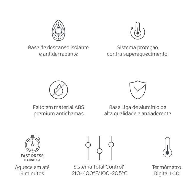 Tempo de Aquecimento: Tecnologia Fast Press (aquece em até 4 minutos)