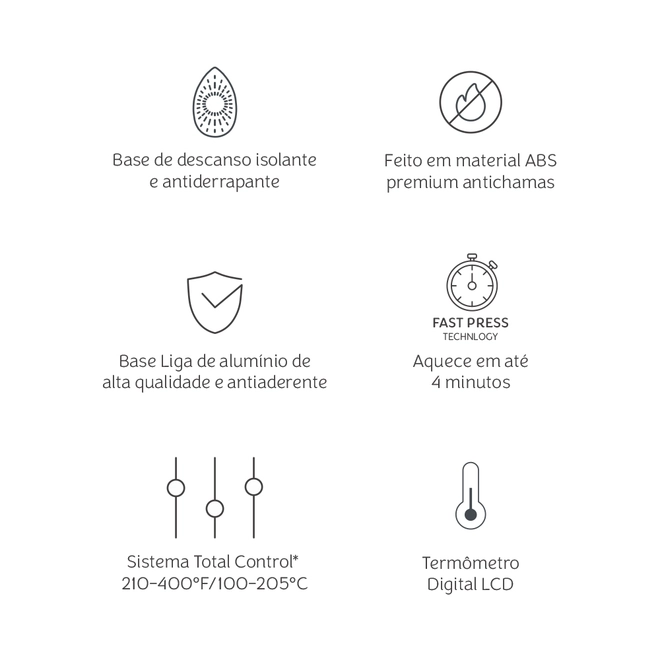 Tempo de Aquecimento: Tecnologia Fast Press (aquece em até 4 minutos)
