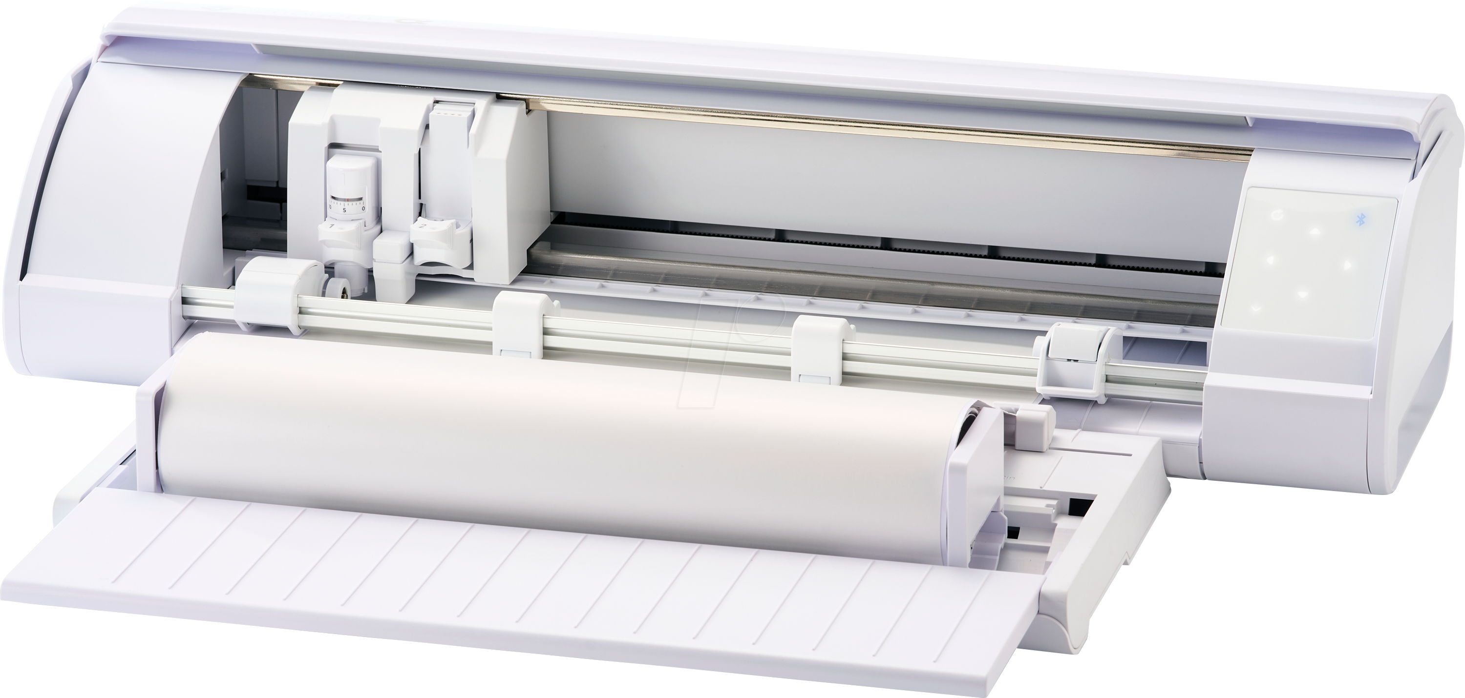 A Silhouette Cameo 5 Alpha também é compatível com suporte para rolo (vendido separadamente), ideal para quem trabalha com adesivos, vinis e materiais contínuos, garantindo praticidade e precisão em grandes produções.