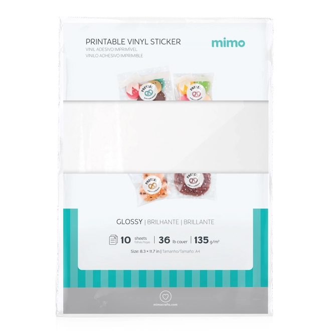 Vinil Adesivo Imprimível Brilho Mimo é resistente à água, tem cola permanente, flexível e com impressão jato de tinta de alta qualidade, com secagem instantânea. Sendo ideal para projetos decorativos